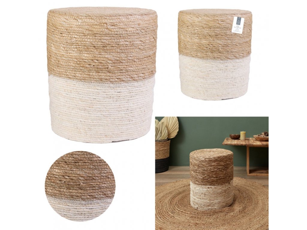 Bílo-béžový pletený taburet MALAMI