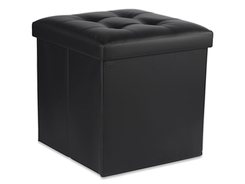 Černý skládací taburet ZAREX L z ekokůže