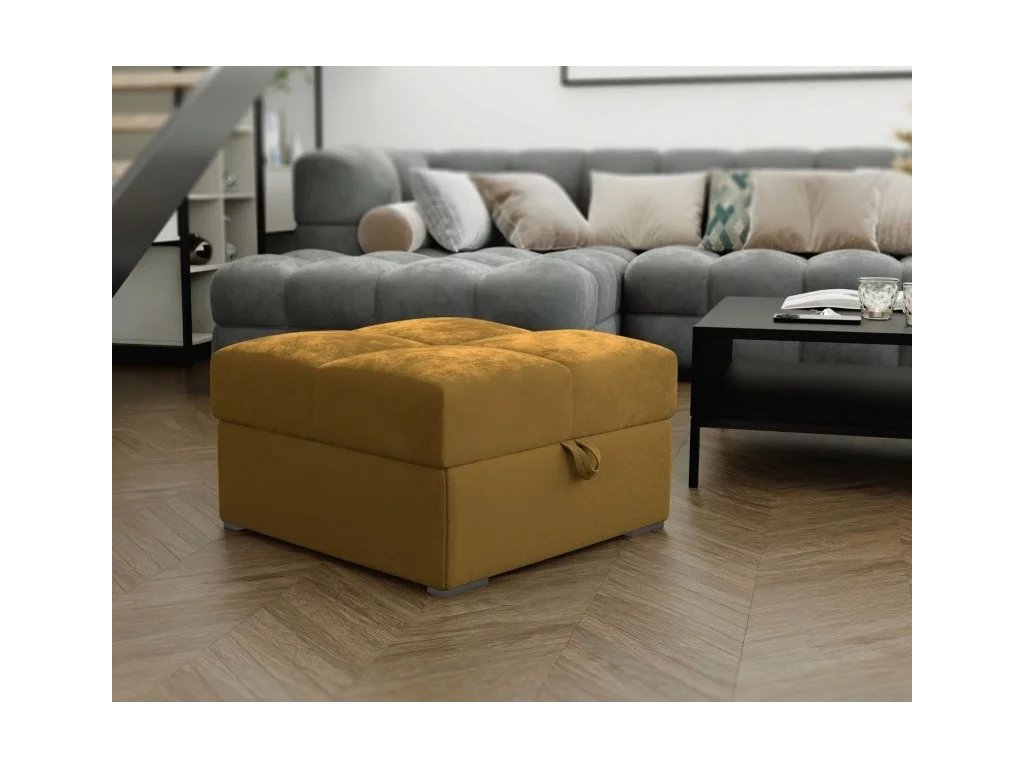 Hořčicový taburet ZENOVA s úložným prostorem 65x65 cm