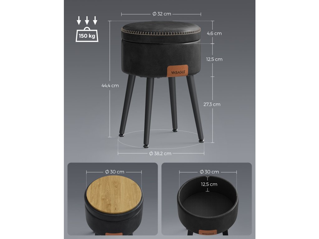 Taburet s úložným prostorem EKHO černý