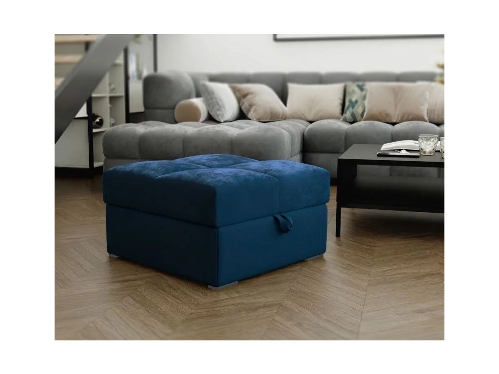 Tmavě modrý taburet ZENOVA s úložným prostorem 65x65 cm