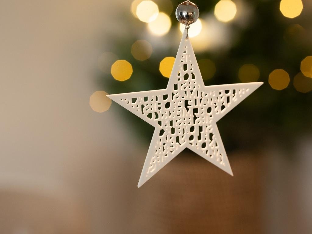 Bílá porcelánová hvězda MERRY CHRISTMAS, velká