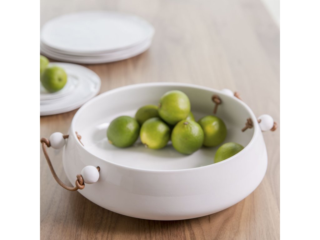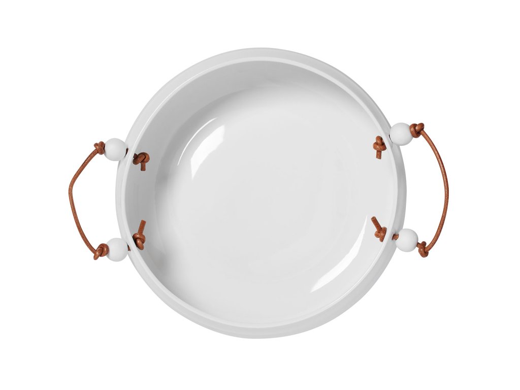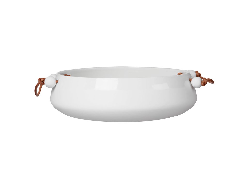 Bílá porcelánová miska s koženou rukojetí