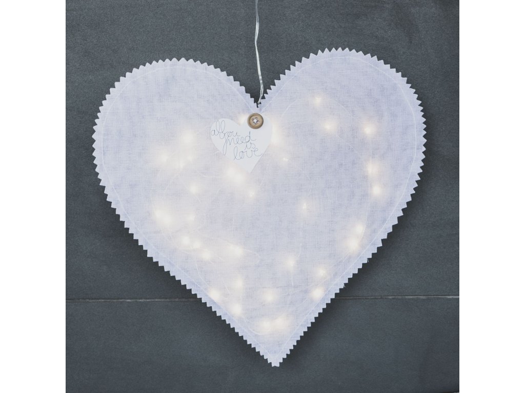 Bílé závěsné srdce HEARTLIGHT s LED světelným řetězem