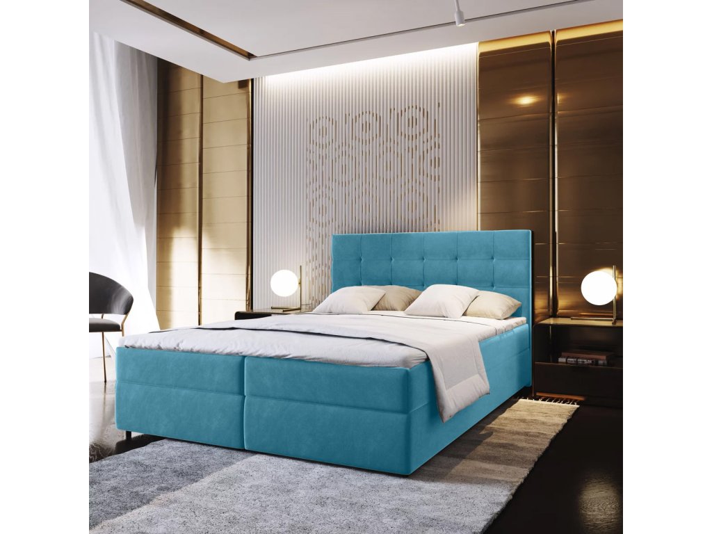 Čalouněná postel boxspring GLORIEN VELVET 140x200 cm modrá