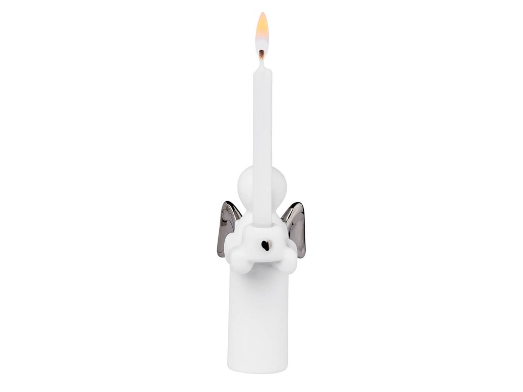 Porcelánový svícen ANDĚL se stříbrnými křídly