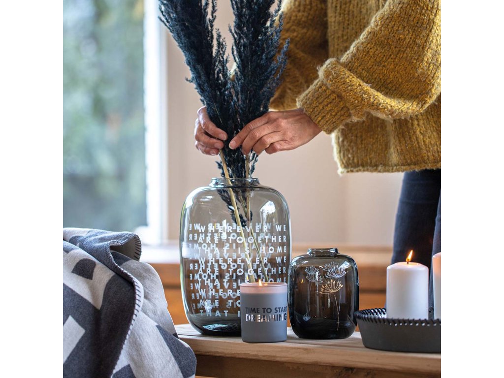 - Ručně foukané barevné sklo s potiskem (šedá)