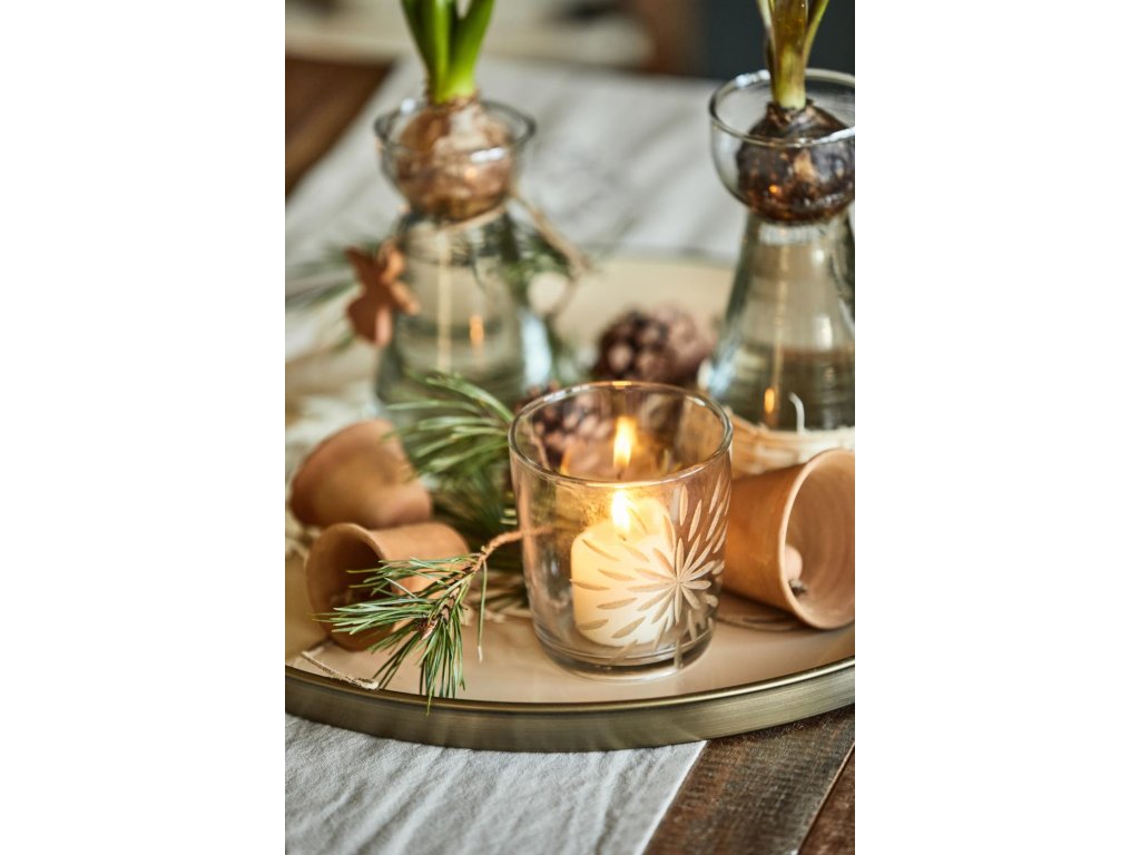 Skleněný svícen s mosazným dekorem BRASS