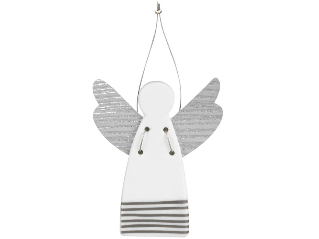 Stříbrný porcelánový anděl STRIPES, závěsný