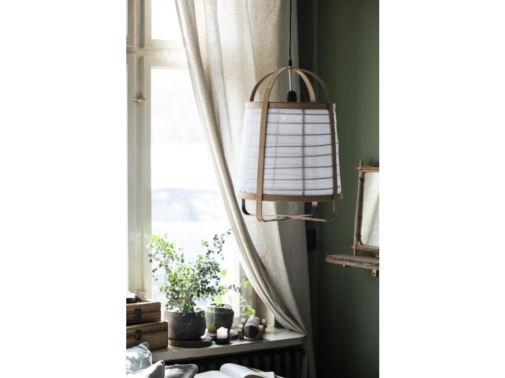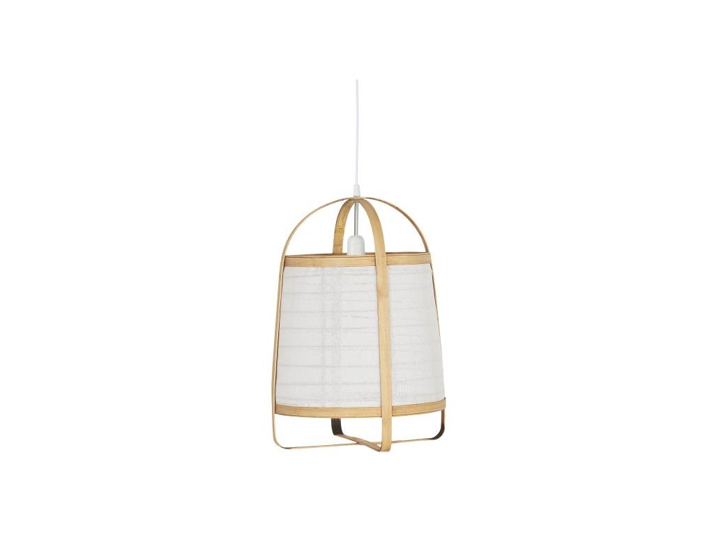 Závěsná bambusová lampa s bílým látkovým stínidlem