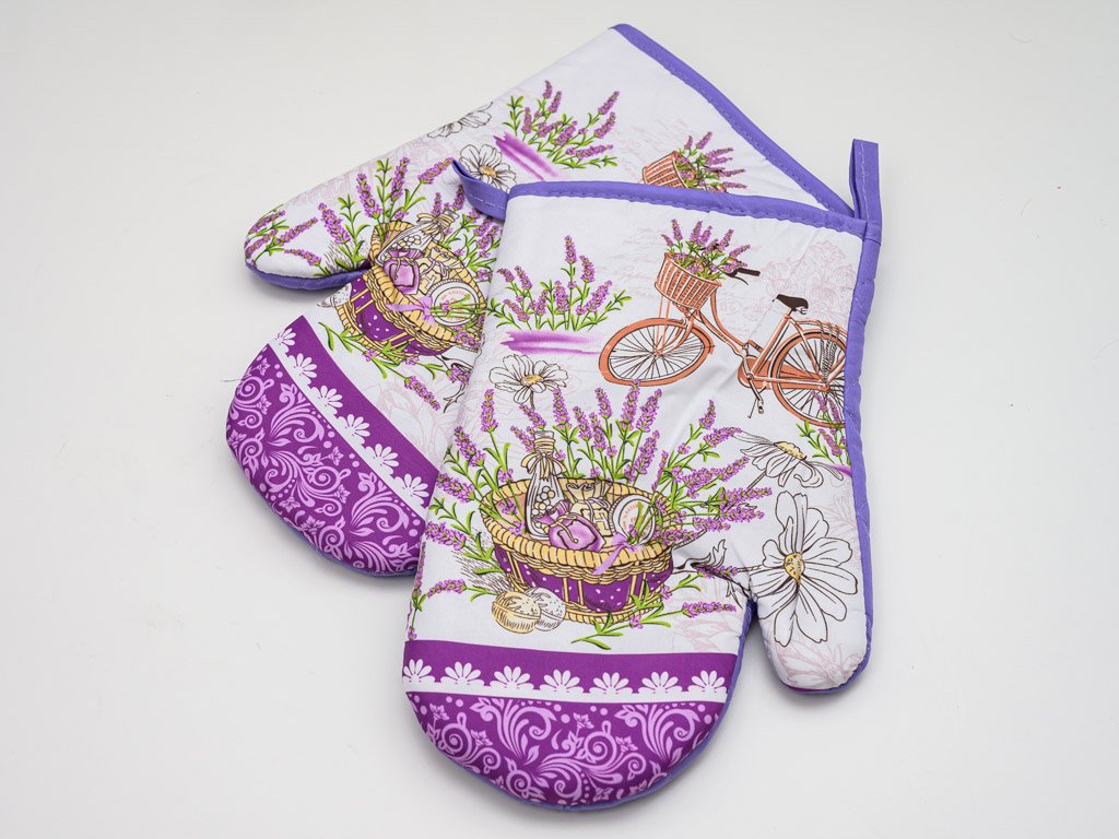 Sada 2 bílo-fialových chňapek s magnetem LAVANTA HAMPER