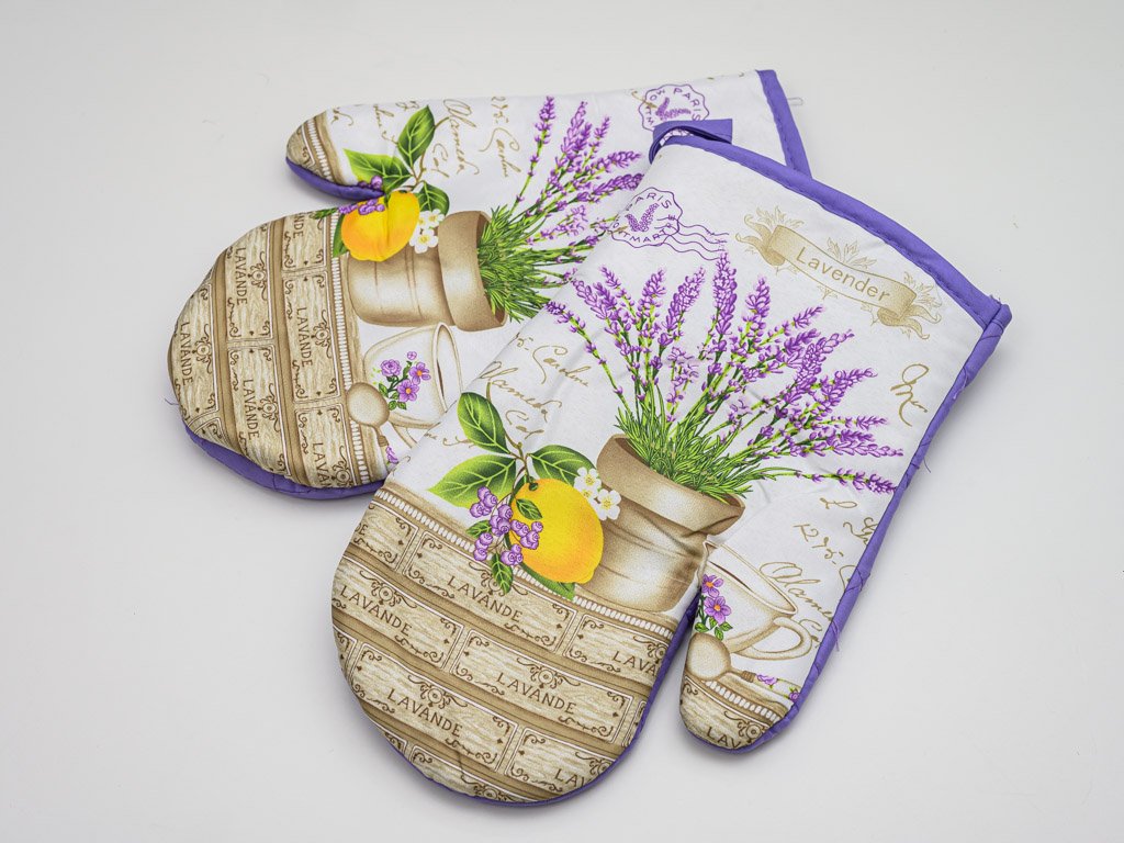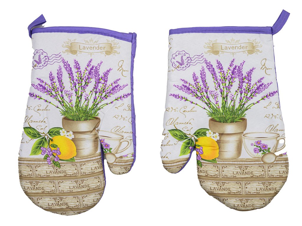 Sada 2 bílo-fialových chňapek s magnetem LAVEN CARE