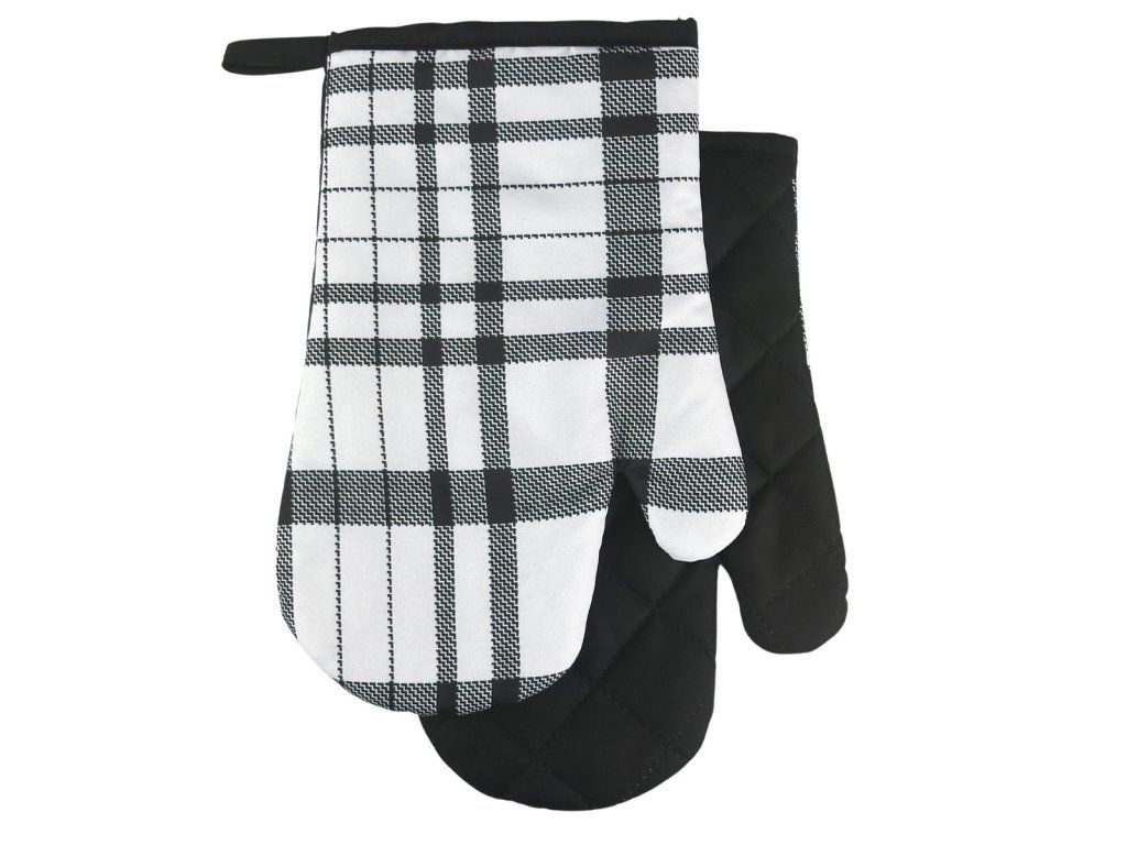 Sada 2 kuchyňských chňapek s magnetem CHECKS, bílo-černá