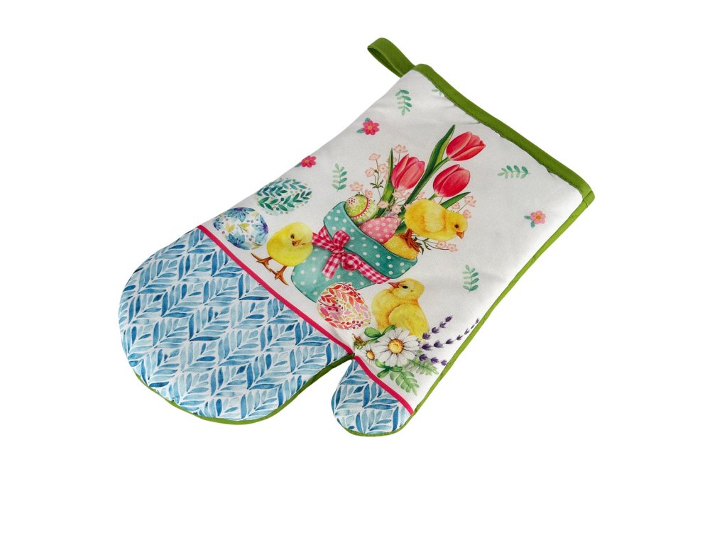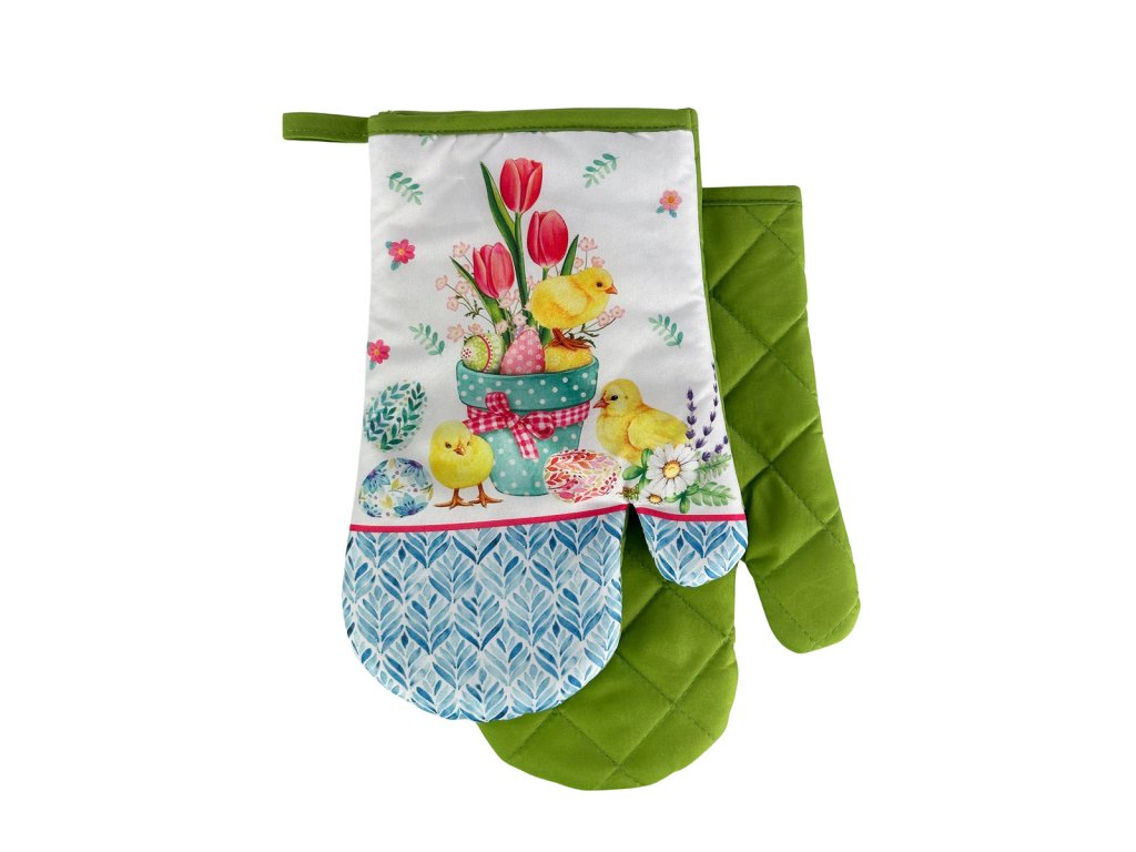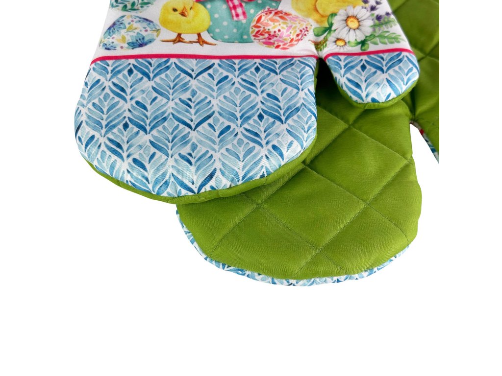 Sada 2 kuchyňských chňapek s magnetem EASTER CHICKS, bílo-zelená