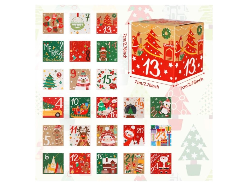 - Balení obsahuje 24 krabiček (očíslovaných od 1 do 24)