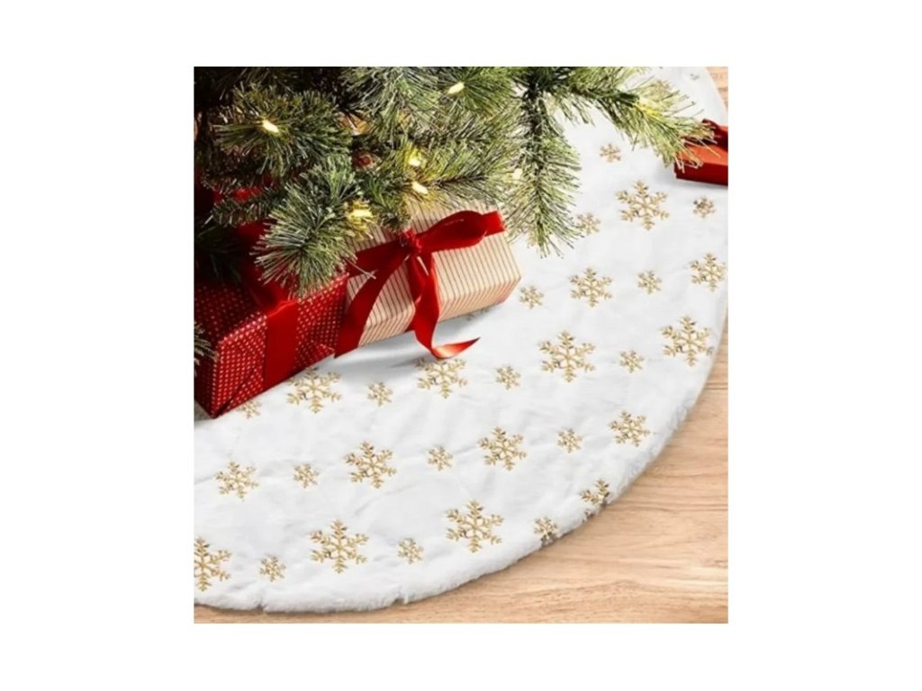 Podložka pod vánoční stromeček GOLD STARS 122 cm, bílá