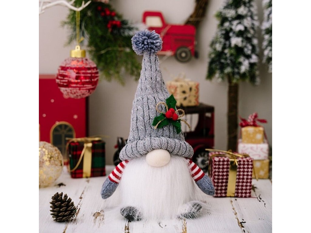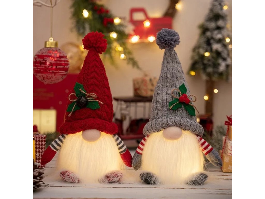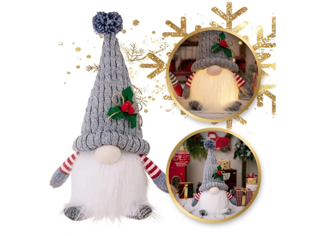 Svítící vánoční trpaslík na baterie FROSTIE 28 cm, šedý