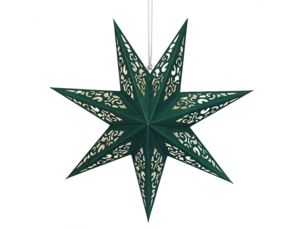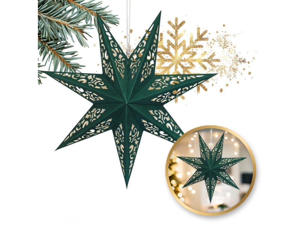 Vánoční papírová hvězda na zavěšení STARLET DELUXE 35 cm, zelená