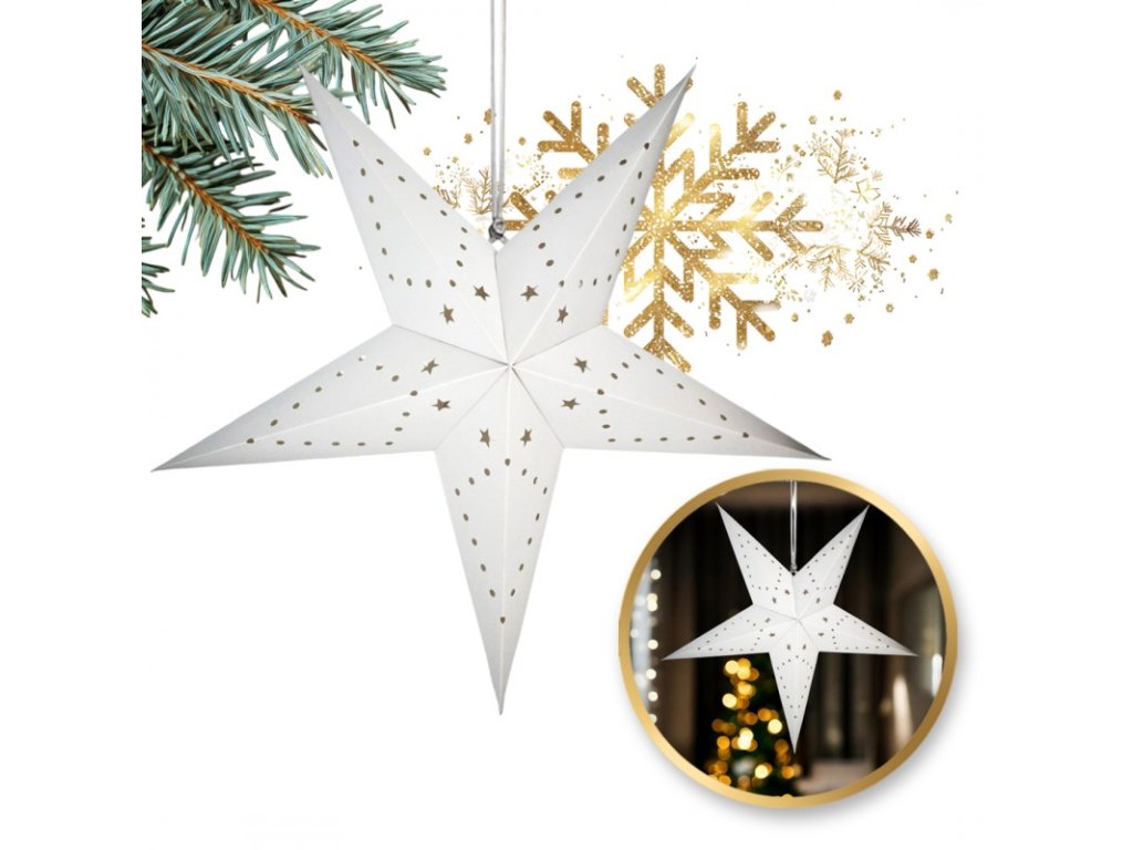 Vánoční papírová hvězda pěticípá STARLET 35 cm, bílá