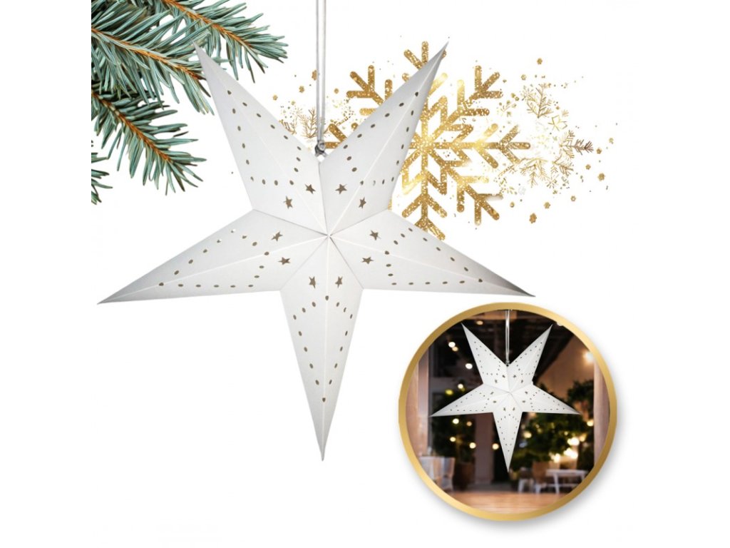 Vánoční papírová hvězda pěticípá STARLET 45 cm, bílá