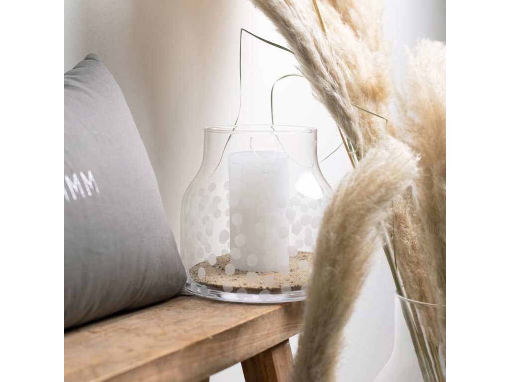 Oživte interiér ve skandinávském stylu přírodninami, zelenými rostlinami a květinami. Skleněná váza DOTS se stane elegantním prvkem v místnosti nejen během letních dnů. Vázu můžete vyplnit přírodninami nebo světýlky a vytvořit rychlý vánoční svícen.