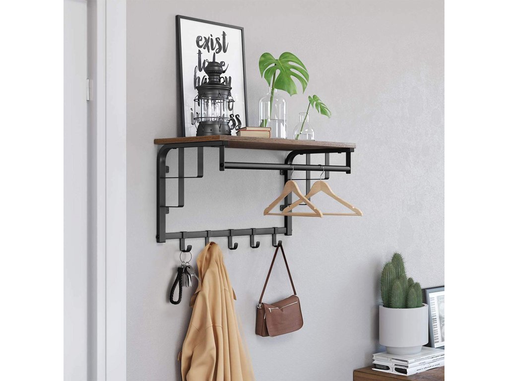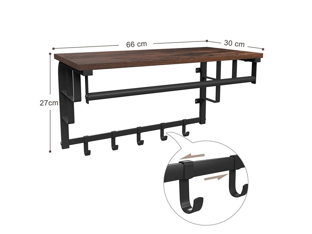 Hnědá police s věšáky TAYLOR 66x30x27 cm