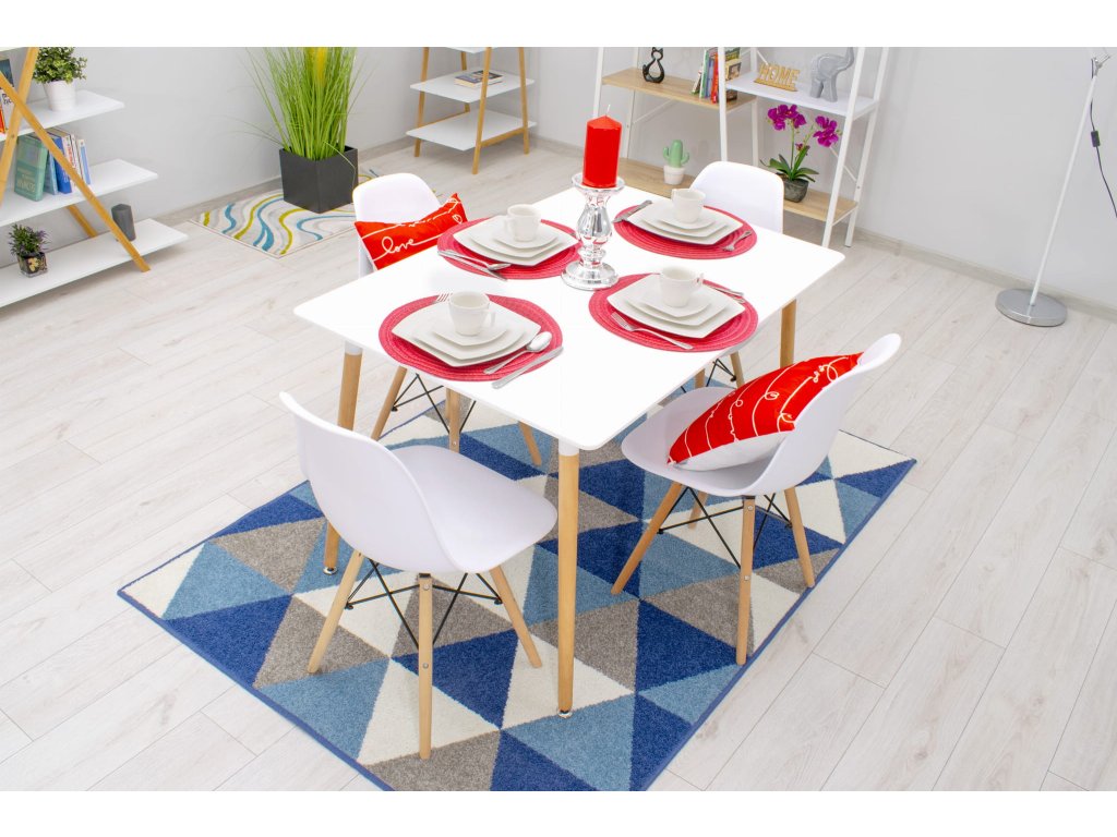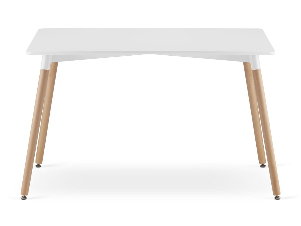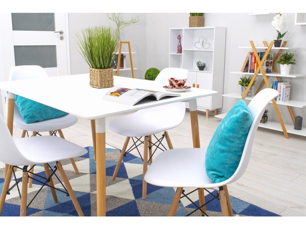 Stůl a židle inspirované severským designem přinášejí do každé jídelny moderní vzhled a praktičnost. Jemná kombinace bílého povrchu stolu a přírodního buku dodává interiéru svěžest a světlo. Ergonomický tvar židlí s černým čalouněním z eko kůže poskytuje pohodlí při každodenním stolování i delším posezení.