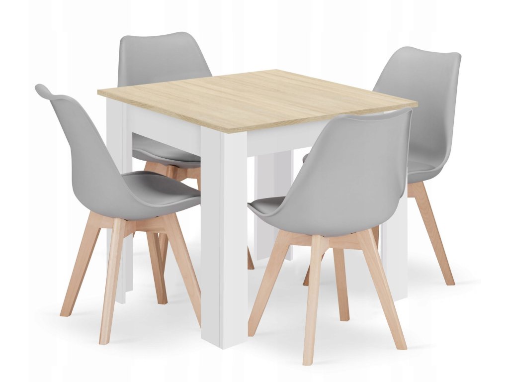 Jídelní set 1 + 4, stůl MADO 80x80 bílý + židle BALI MARK šedá