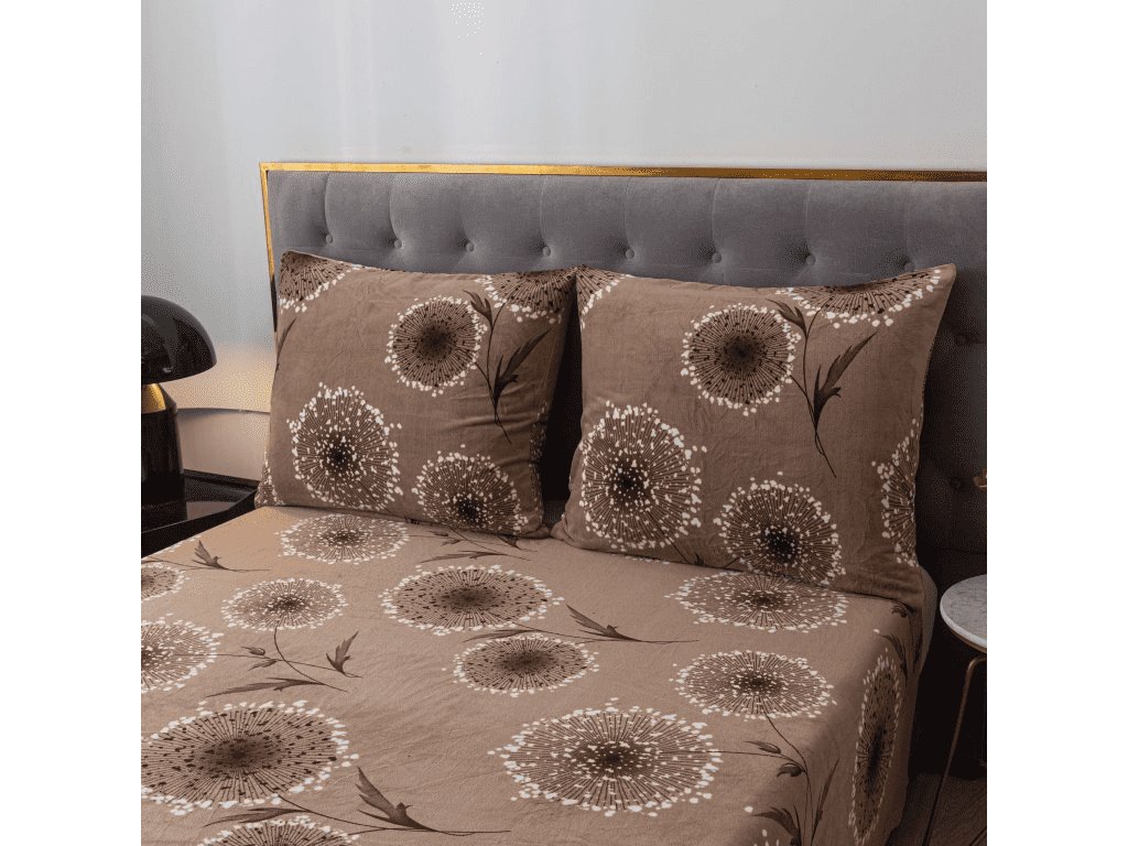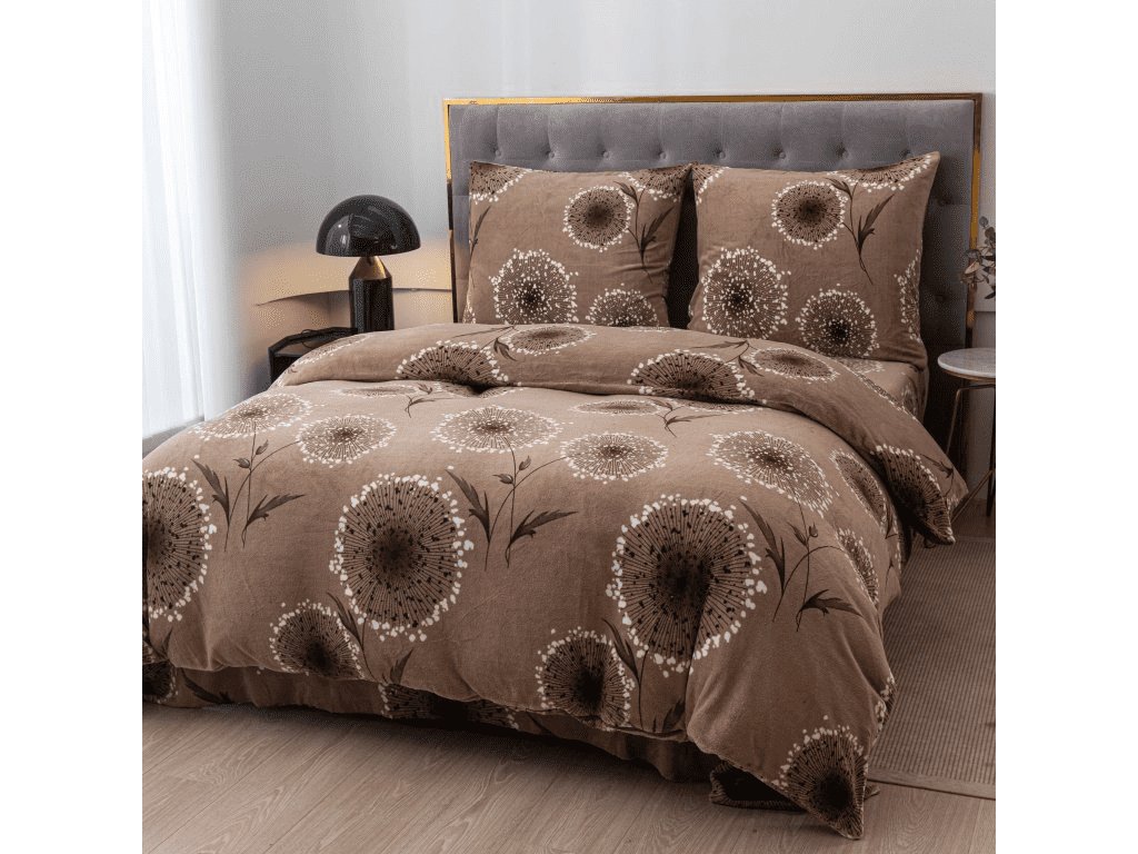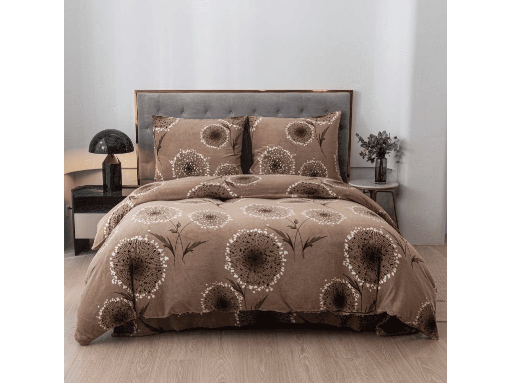 Sada 2ks mikroplyšového povlečení PAMPELINO světle hnědé + prostěradlo mikroplyš SOFT 180x200 cm bílé, dvoulůžko