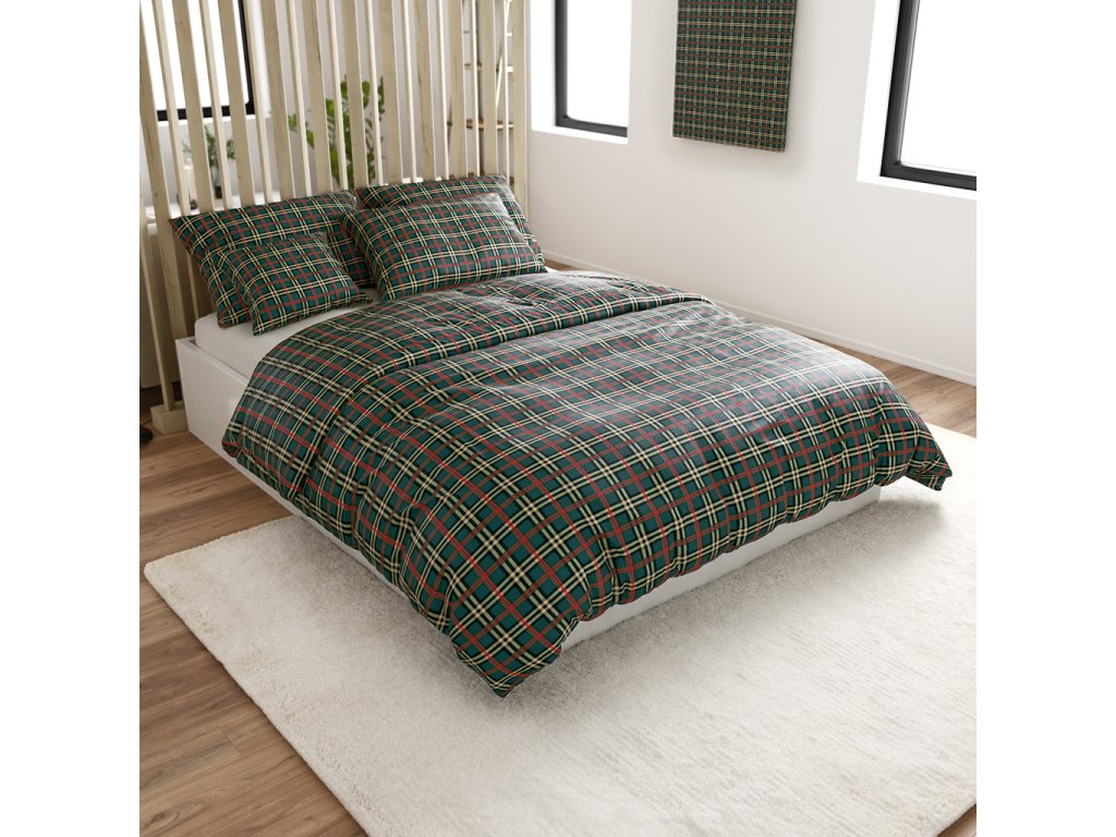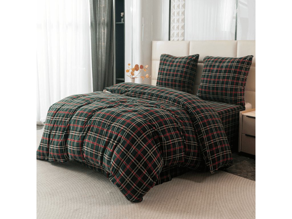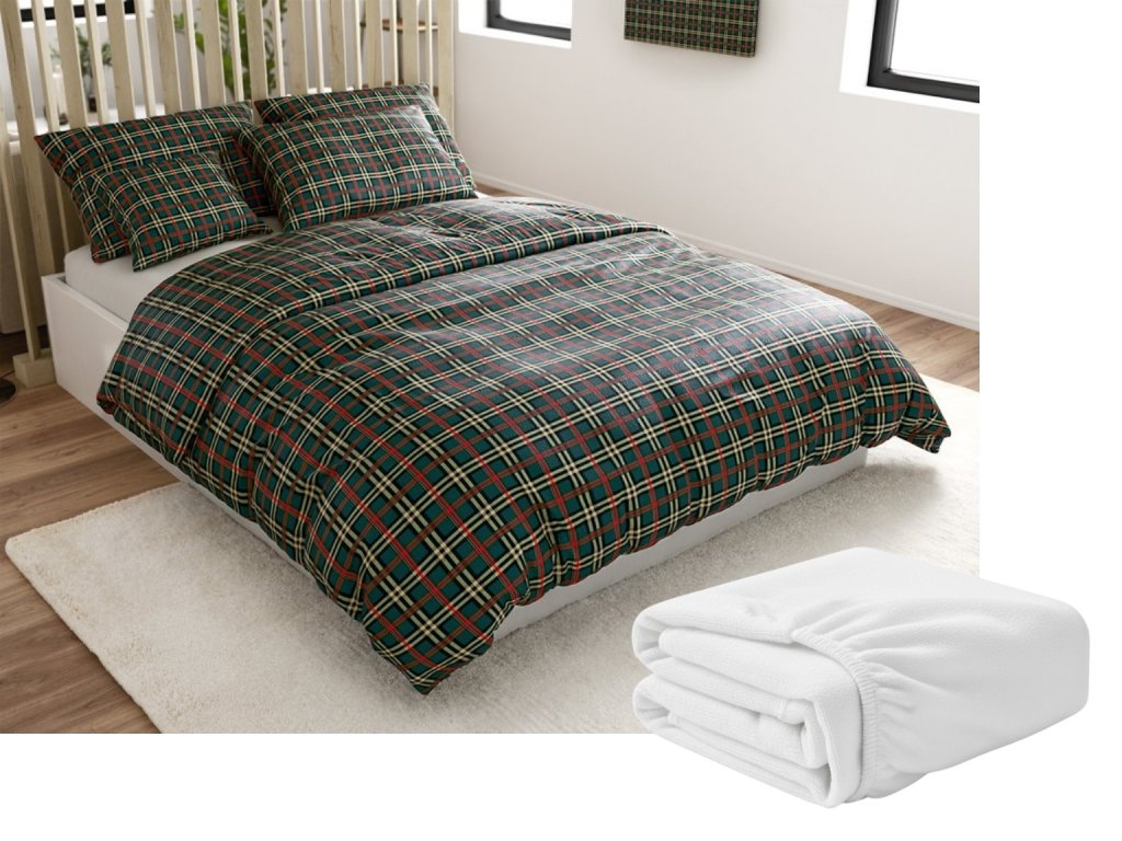 Sada mikroplyšového povlečení GLENMOORE zelené + prostěradlo mikroplyš SOFT 90x200 cm bílé, jednolůžko