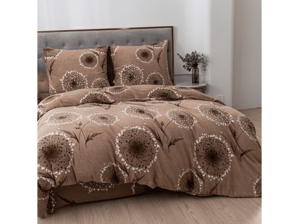 Sada mikroplyšového povlečení PAMPELINO světle hnědé + prostěradlo mikroplyš SOFT 90x200 cm bílé, jednolůžko