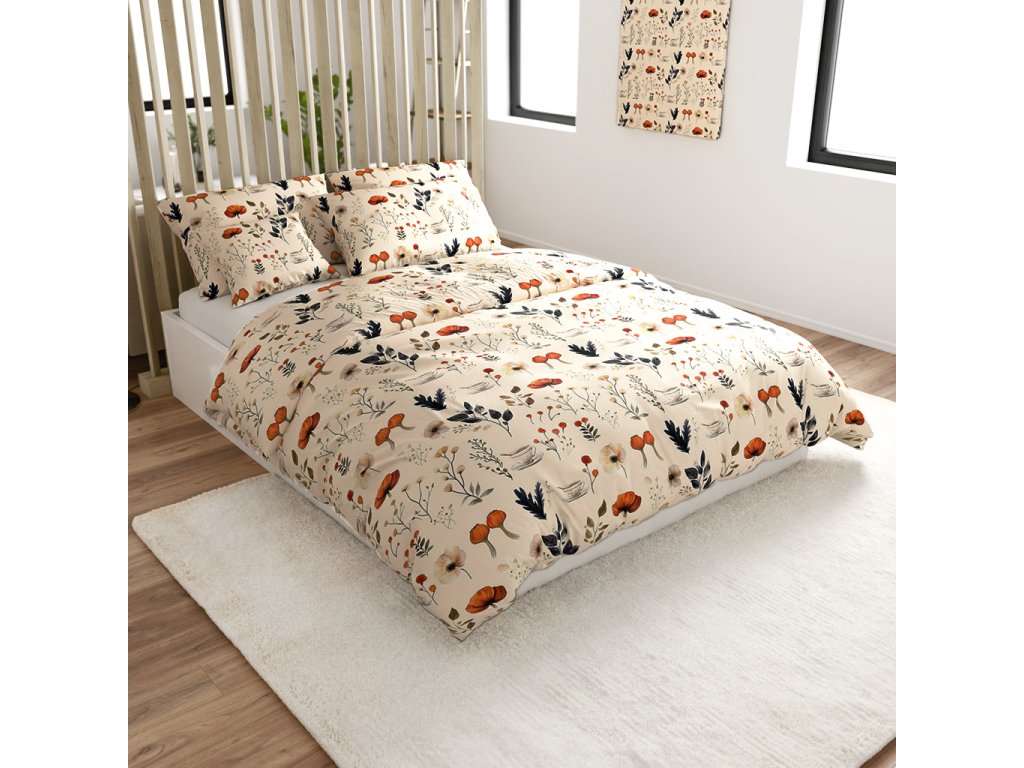 Sada mikroplyšového povlečení PAPAVA krémové + prostěradlo mikroplyš SOFT 180x200 cm bílé, dvoulůžko
