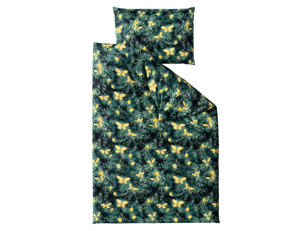 Sada mikroplyšového povlečení YELLOW BUTTERFLY tmavě zelené + prostěradlo mikroplyš SOFT 90x200 cm bílé, jednolůžko