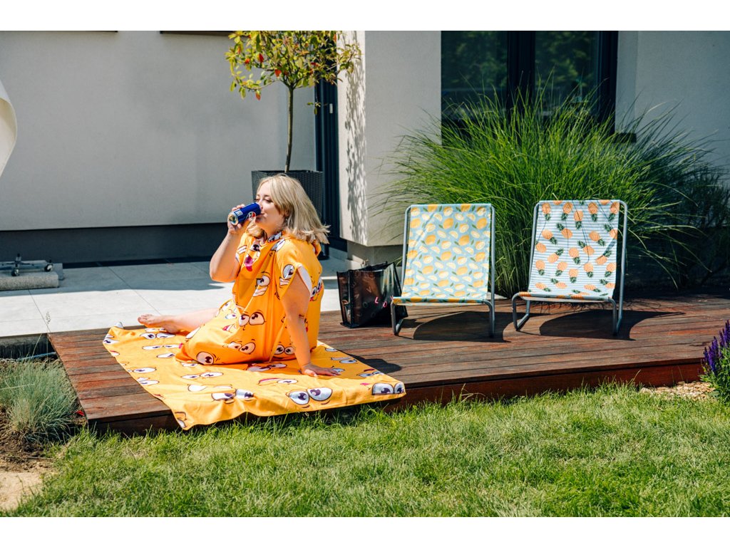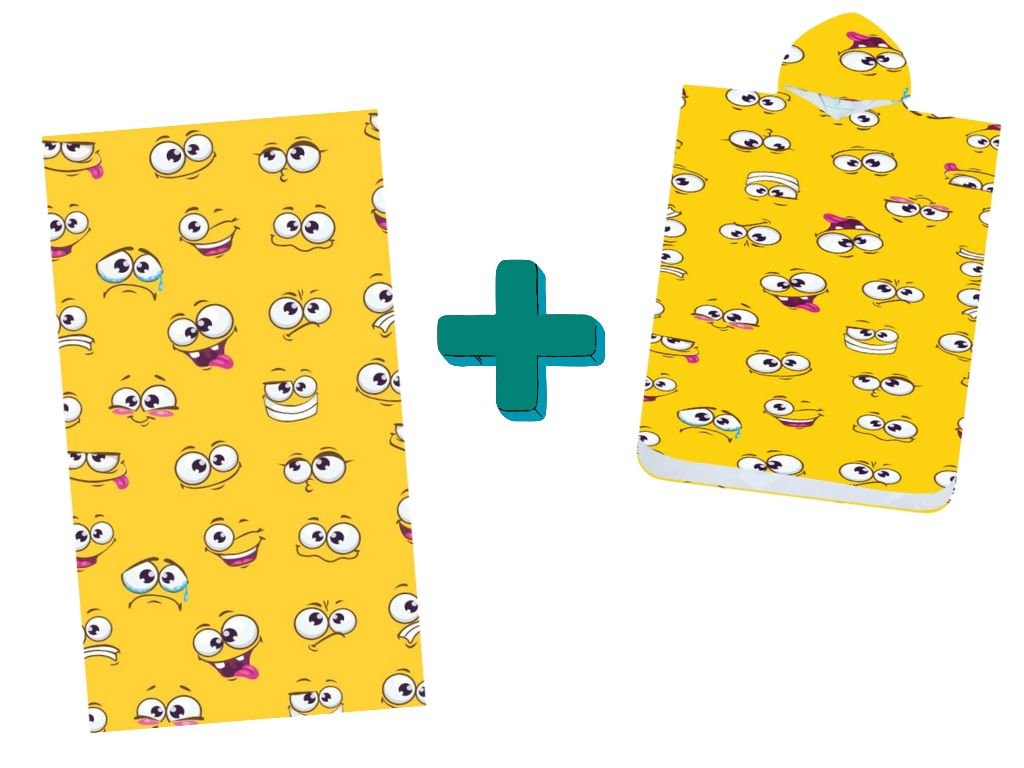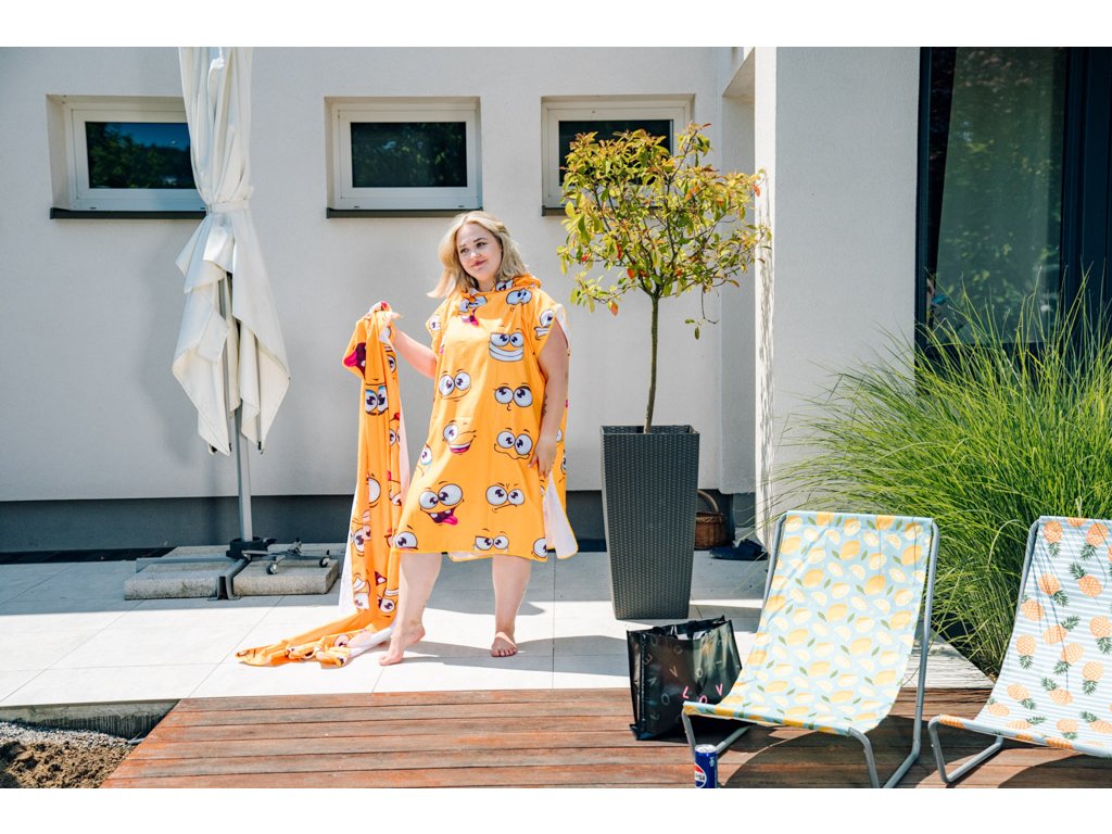 Plážový set SMILE – osuška 100×180 cm a pončo 80×145 cm, žlutý