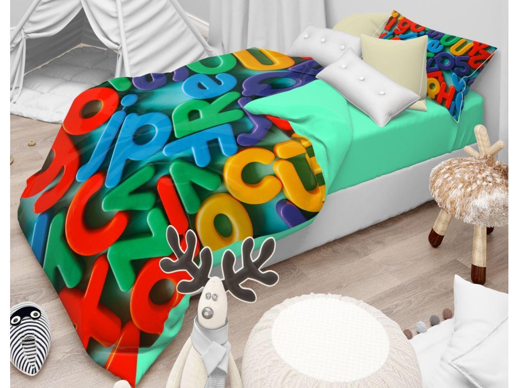 AKCE Bavlněné povlečení do postýlky ABECEDA zelené II. jakost