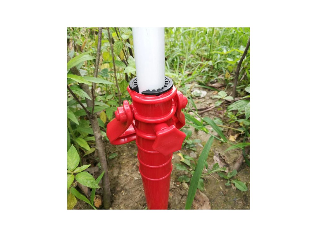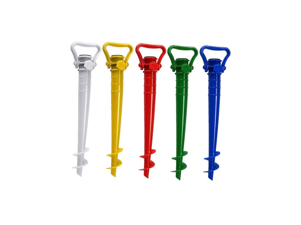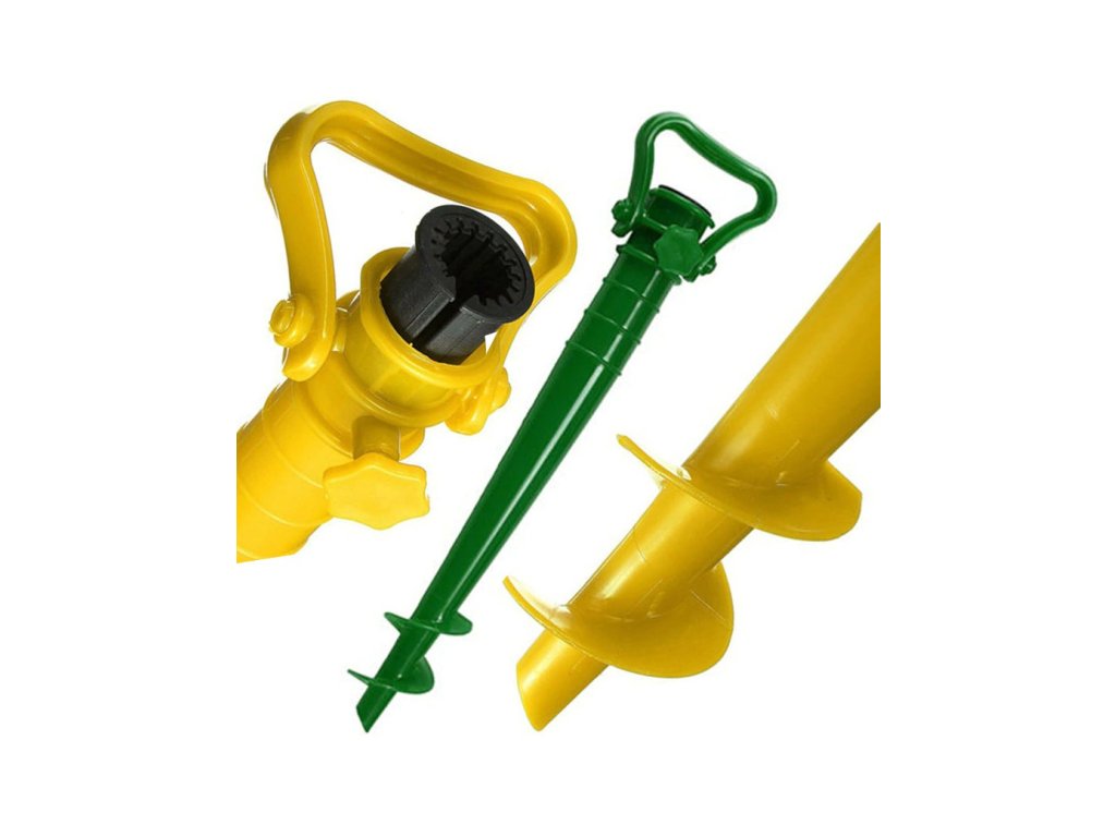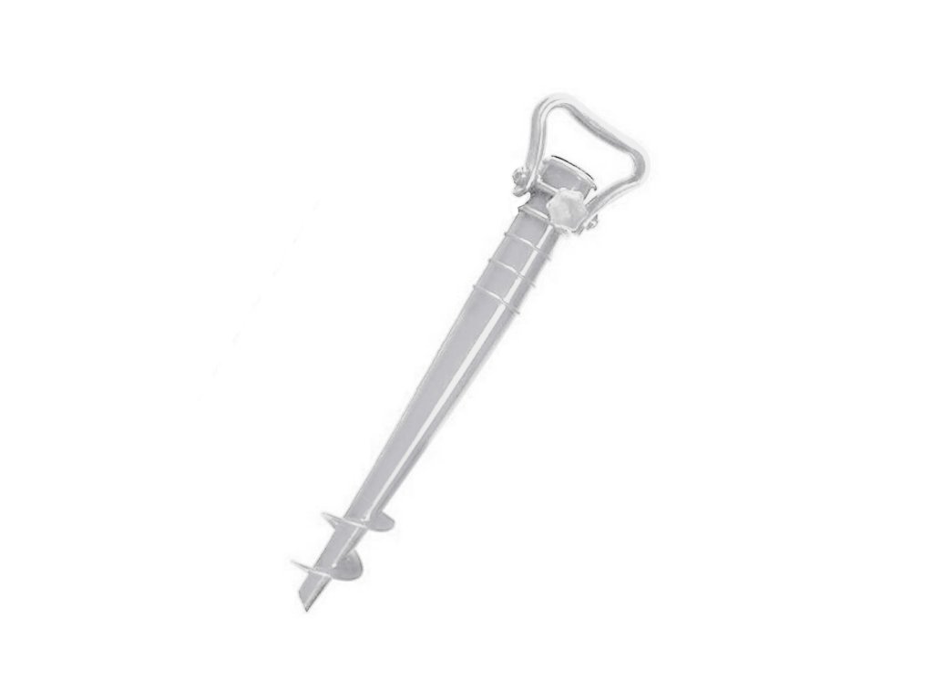 - Špička stojanu zakončená spirálou (vrtákem) umožňujícím vrtání základny do písku nebo zeminy