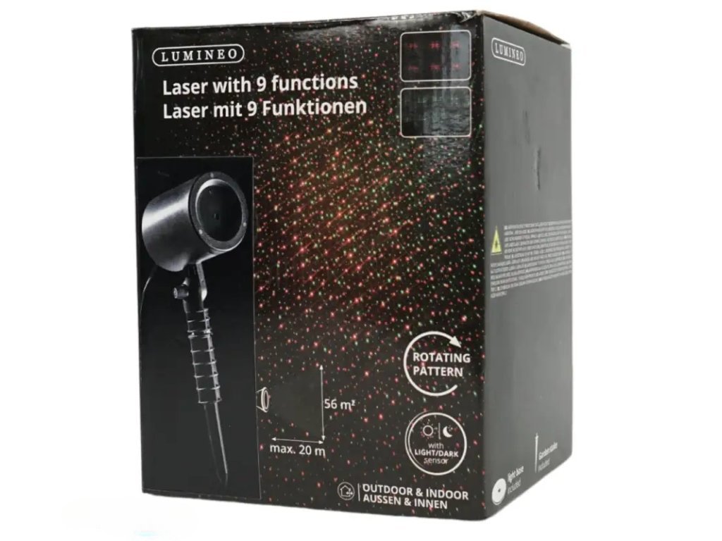 LED laserový projektor s rotačním efektem LUMINEO 9 funkcí, černý