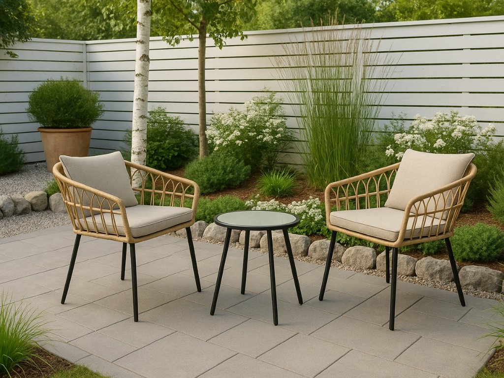 - Syntetický materiál (techno-ratan) zcela odolný proti UV záření a nepříznivým povětrnostním vlivům