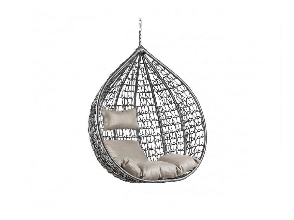 Šedé závěsné křeslo KOKON bez stojanu, světlý polštář