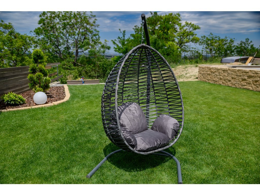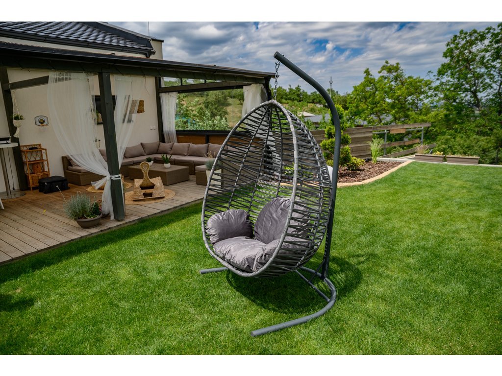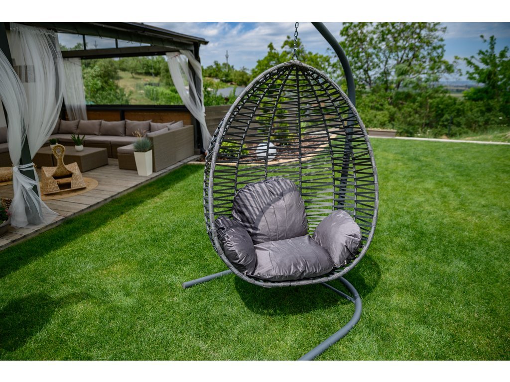 - Pokud používáte pro zavěšení křesla stojan, umístěte ho na rovný a pevný povrch, kde bude jeho pozice stabilní (např. podlaha, vydlážděná terasa).