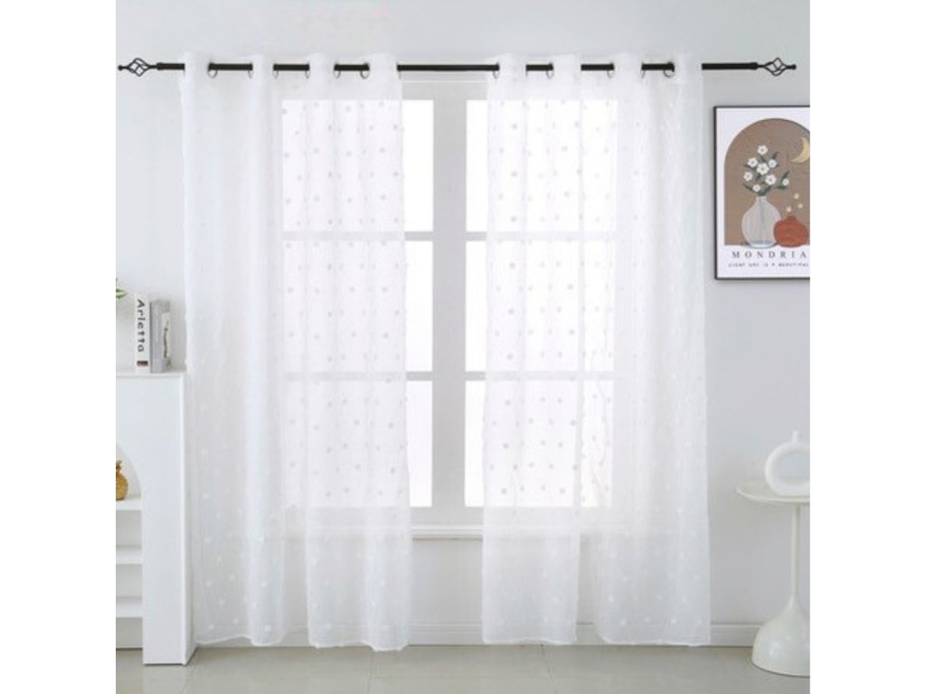 Bílé závěsy BRISA (2ks) s tečkovaným vzorem 140x250 cm