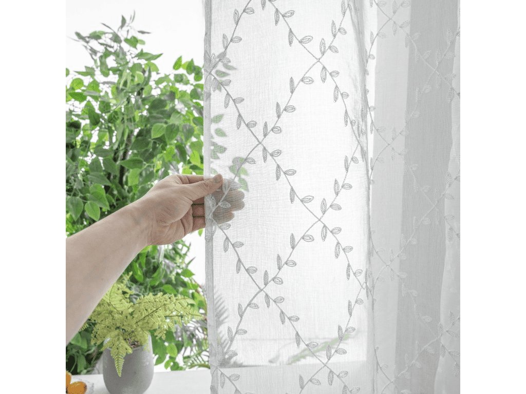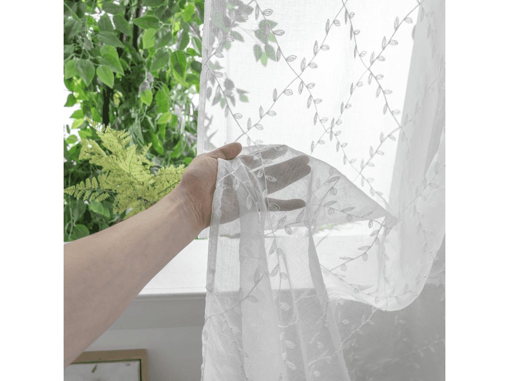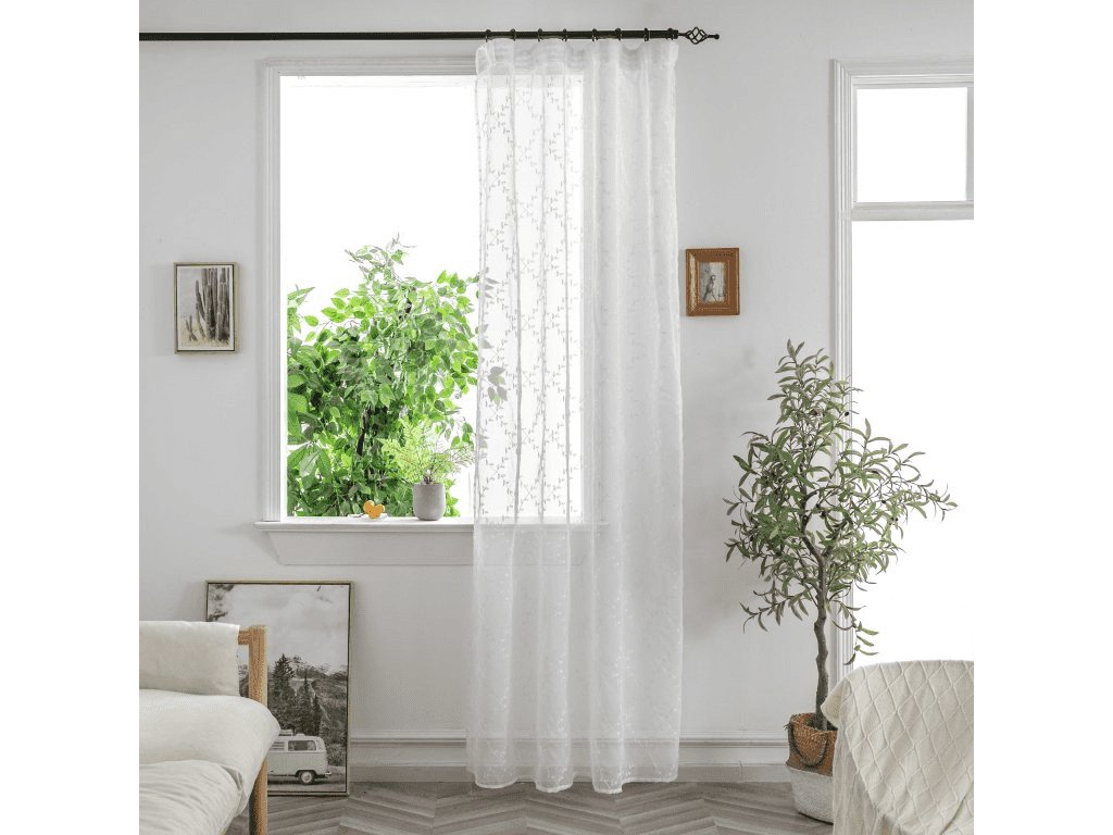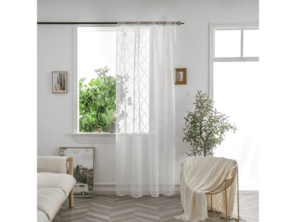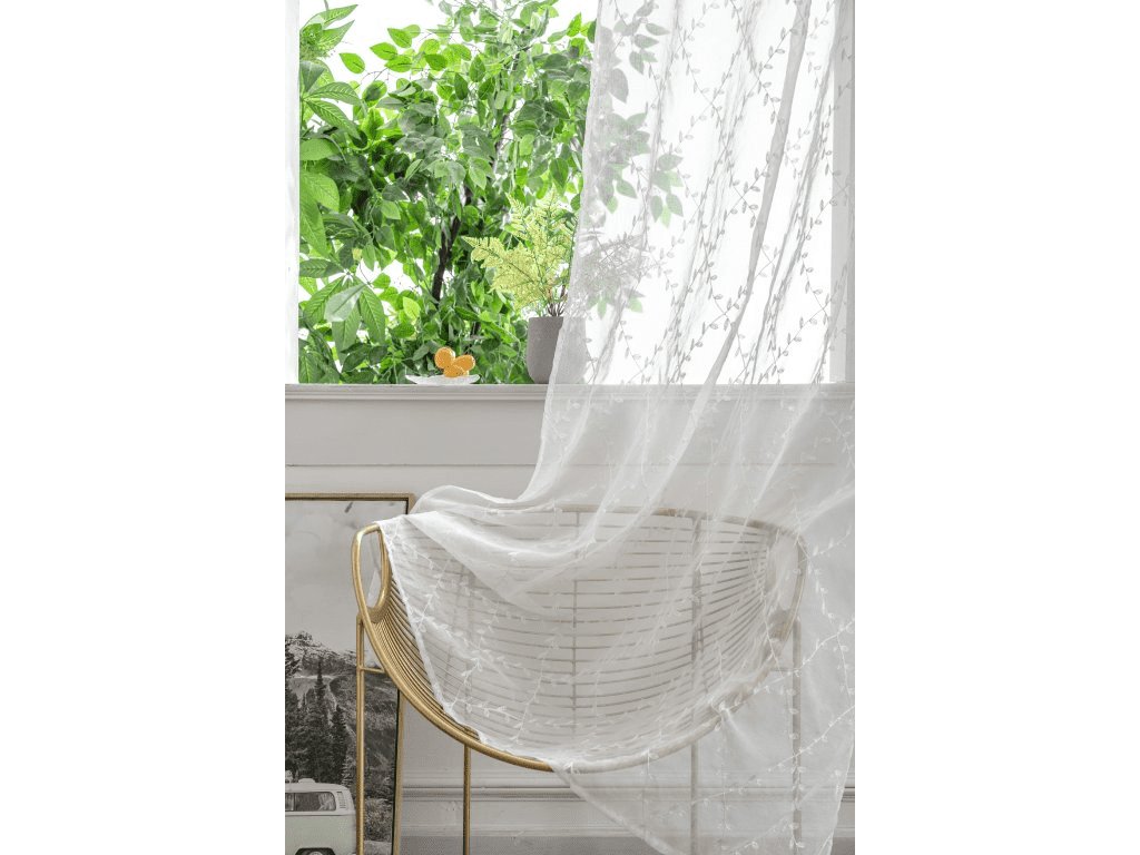 Bílý závěs VINTORA se vzorem lístků 140x250 cm
