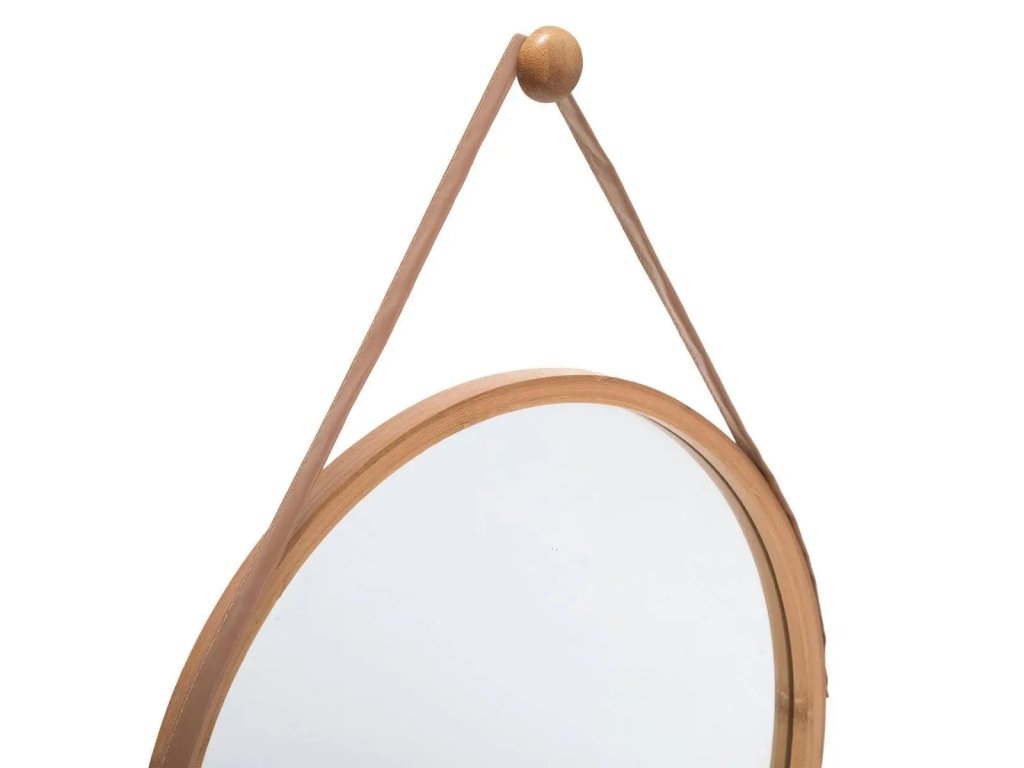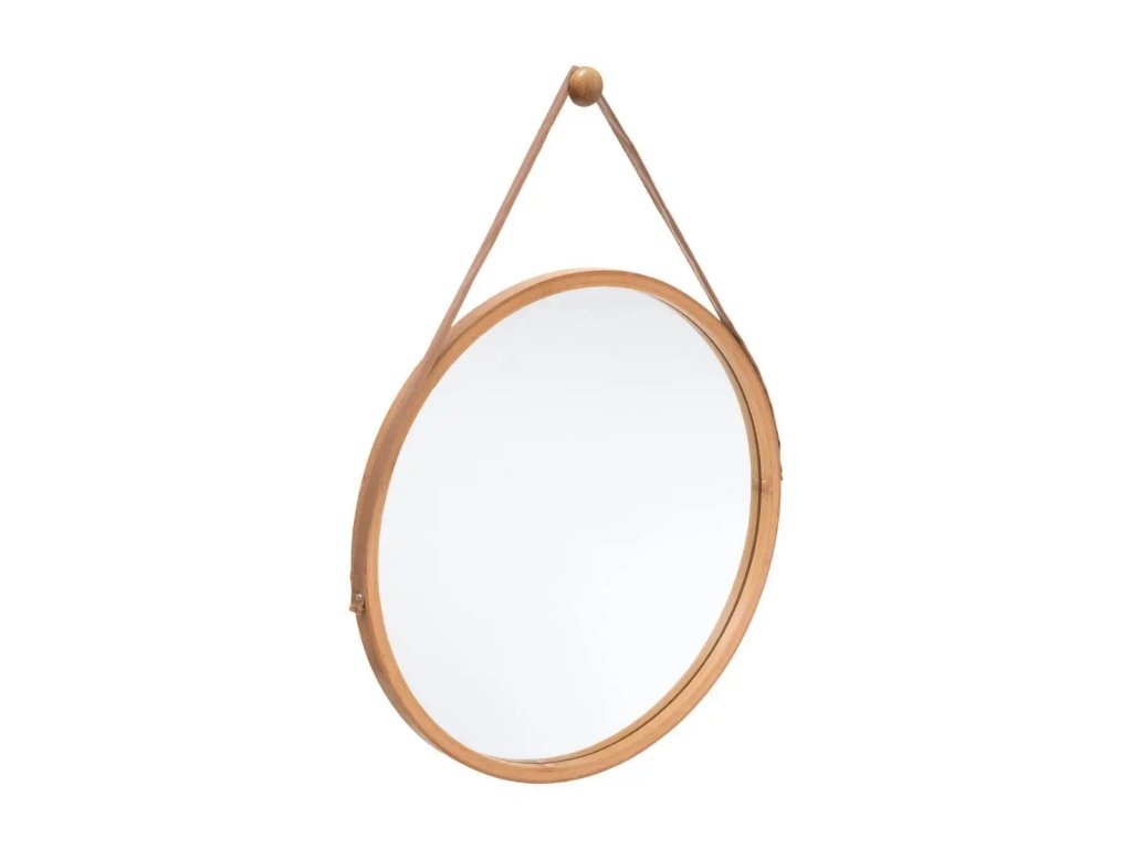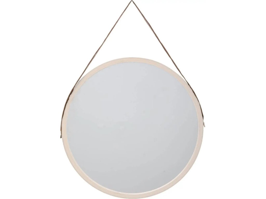 Minimalistický design zrcadla podtrhuje úchytka z hnědé ekokůže. Díky ní si zrcadlo můžete pohodlně zavěsit na dřevěný háček, který je součástí. Přírodní tóny skvěle zapadnou do seversky laděného interiéru.